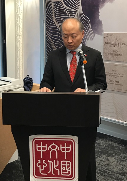 金兴盛厅长在致辞时谈到:丝绸是人类文明的重要见证。五千年前,中国人发明了养蚕丝织技术,并通过丝绸之路向世界传播。2009年,“中国蚕桑丝织技艺”被列入联合国教科文组织“人类非物质文化遗产代表作名录”,精湛的女红技艺得到了传承和保护。近年来,浙江省与以色列的文化交流日益密切,相关文化单位与以色列多家艺术与文博机构开展了交流合作,以色列国家文物局加入了中国丝绸博物馆的“丝路之绸国际研究联盟”,此次“丝•赏——时尚中的中国女红”展将进一步密切浙江省与以色列的联系,促进两地人民的相互了解。