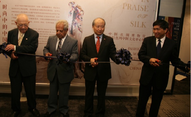 开幕式后,中国丝绸博物馆副馆长张毅陪同嘉宾参观展览,并进行现场讲解。新华社、中央电视台、国际广播电台、光明日报等新闻媒体,采访了展览开幕式。
