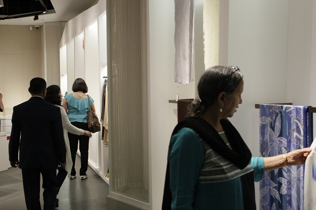 馆长助理周旸首先向各位嘉宾介绍了我馆的基本情况,之后在讲解员的精彩的导览下,中华人民共和国二级大法官、最高人民法院审判委员会专职委员裴显鼎、浙江省高级人民法院副院长朱新力、上合组织秘书处、联合国安理会反恐执行局代表,以及印度、吉尔吉斯、巴基斯坦、塔吉克斯坦、乌兹别克斯坦、阿富汗、白俄罗斯、蒙古国、柬埔寨、尼泊尔等国家的最高法院大法官参观了“锦程——中国丝绸与丝绸之路”主题展,并在锦廊和经纶堂饶有兴致的欣赏了我馆的文创产品。