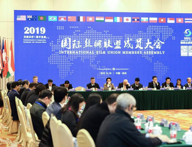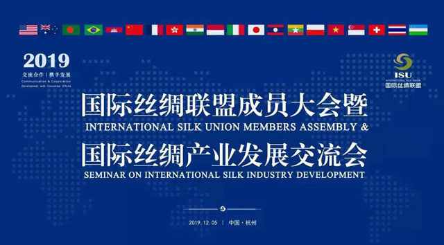 2019年12月5日,“2019国际丝绸联盟成员大会暨国际丝绸产业发展交流会”在中国杭州隆重举行,来自中国、意大利、法国、巴西、日本、泰国、印度、越南、柬埔寨、乌兹别克斯坦、老挝、缅甸和中国香港等13个国家和地区的150余位政府领导和联盟成员单位代表、专委会委员和丝绸专家参会。浙江省商务厅副厅长韩杰,浙江省经信厅副厅长杜华红,国际丝绸联盟名誉主席、中国丝绸协会名誉会长杨永元,中国丝绸协会会长唐琳等领导出席会议。会议由国际丝绸联盟秘书长费建明主持。中国丝绸博物馆馆长赵丰作为国际丝绸联盟副主席及历史文化专业委员会主任出席了会议并发言。