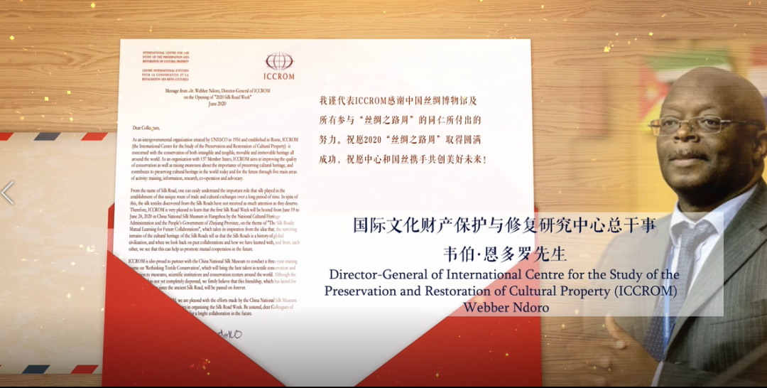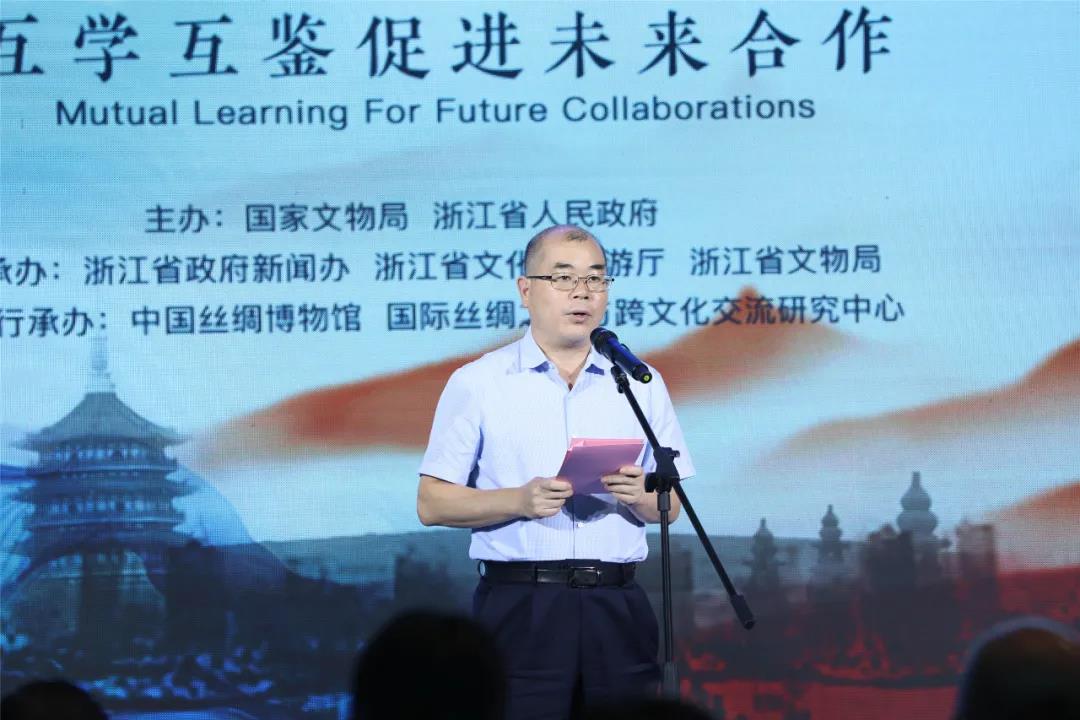 6月19日下午,2020年丝绸之路周主场活动开幕式在中国丝绸博物馆举行。活动由国家文物局、浙江省人民政府主办,浙江省政府新闻办、浙江省文化和旅游厅、浙江省文物局承办,中国丝绸博物馆、国际丝绸之路与跨文化交流研究中心执行承办。为进一步践行习近平主席在北京“一带一路”国际合作峰会上提出的“和平合作、开放包容、互学互鉴、互利共赢”的丝绸之路精神,同时纪念“丝绸之路:长安-天山廊道的路网”跨国申遗成功六周年,从6月19日到24日,2020丝绸之路周将举行丰富的主场活动,活动主题为“互学互鉴促进未来合作”。