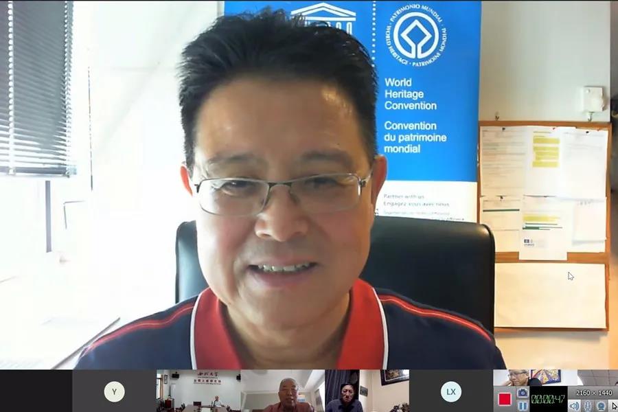 联合国教科文组织世界遗产中心亚太部主任景峰简述当年成为丝绸之路项目总领队杜杜·迪安助理的故事以及在UNESCO法国总部开展围绕世界遗产特别是“丝绸之路:长安—天山廊道的路网”工作的背景故事,同时也告知他手头保留的和UNESCO图书馆等地现存的资料和档案情况,这些信息将成为DAS多语种网站建设的素材来源。