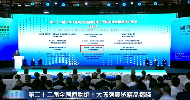 活动现场揭晓了第二十二届(2024年度)全国博物馆十大陈列展览精品推介活动终评结果。中国丝绸博物馆“九天阊阖——丝绸之路上的长安”展从全国161个展览参评项目中脱颖而出,荣获“2024年度全国博物馆十大陈列展览精品”优胜奖。