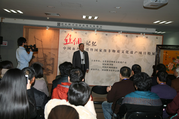 12月30日上午,由文化部非物质文化遗产司、国家图书馆和中国丝绸博物馆共同主办的“丝绸的记忆——中国蚕丝织绣暨国家级非物质文化遗产项目特展”在国家图书馆开幕。国家图书馆馆长周和平、文化部非物质文化遗产司司长马文辉、中国丝绸博物馆馆长助理张毅等领导出席了开幕式。开幕式上还举行了捐赠仪式,来自全国的5位国家级非遗项目代表性传承人将各自作品捐赠国家图书馆。