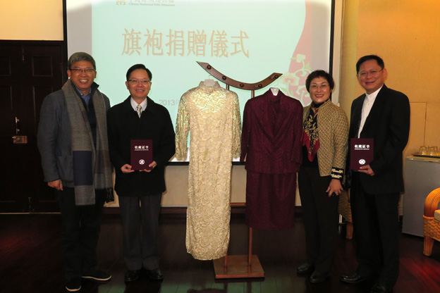 2013年12月24日上午9时,“丁广鋐、严凯泰先生家传旗袍的捐赠仪式”在我馆举行,由中国丝绸博物馆馆长赵丰同志向台湾中央贸易开发股份有限公司董事长丁广鋐先生和裕隆集团董事长严凯泰先生的代表颁发了中国丝绸博物馆的捐赠证书。