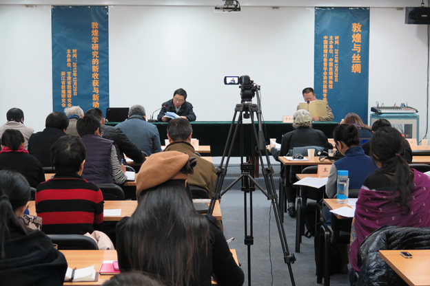 2013年12月29日上午,由甘肃省敦煌研究会和浙江省敦煌研究会联合主办的一场以“敦煌学研究的新收获与新动向”为主题的学术研讨会在中国丝绸博物馆活动报告厅举行,此次研讨会是“敦煌与丝绸之路”学术研讨会暨学术讲座的两个主题之一,是配合“千缕百衲——敦煌莫高窟出土纺织品的保护与研究”展览而开展的学术交流活动。中国敦煌吐鲁番学会秘书长柴剑虹与浙江省社科联主席蒋承勇为研讨会致辞,甘肃省敦煌研究会会长、敦煌研究院副院长罗华庆和浙江省敦煌研究会副会长、浙江大学教授鲁东明主持了研讨会。