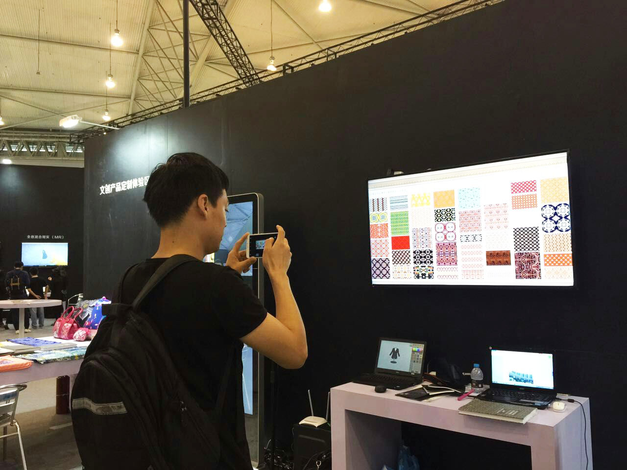 “再造”与“成像”展示了该项目基于丝绸文物设计素材数据库所构建的“丝绸文物数据管理系统”。并将该系统与服装设计软件相结合,使参观者可以完成“纹样检索——纹样设计——服装设计”的体验流程。并向参观者展示了该项目生产的相关产品和出版的书籍。有位来自陕西的博物馆文创行业人员讲:“看到这个展览真是十分激动,这么多好看的纹样为我们文创工作提供了丰富的素材”。