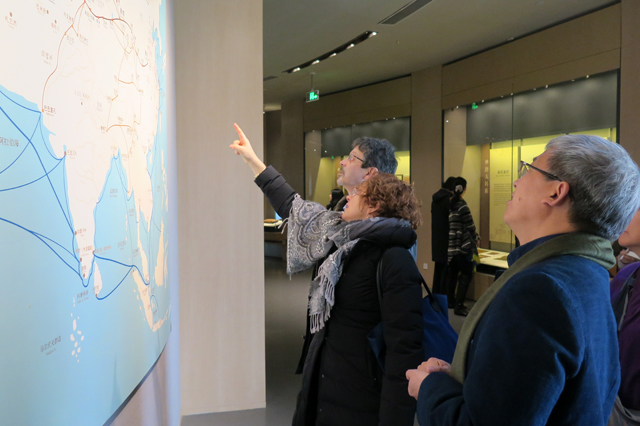 2月26日上午,威尼斯大学校长Michiele Bugliesii教授、副校长Tiziana Lippiello 教授一行在敦煌文化弘扬基金会发起人王胤博士的陪同下,来到中国丝绸博物馆进行考察交流。随行人员还有敦煌研究院美术研究所所长侯黎明、敦煌文化弘扬基金会国际事务总监张琼文、敦煌文化弘扬基金会秘书长陈丹等。