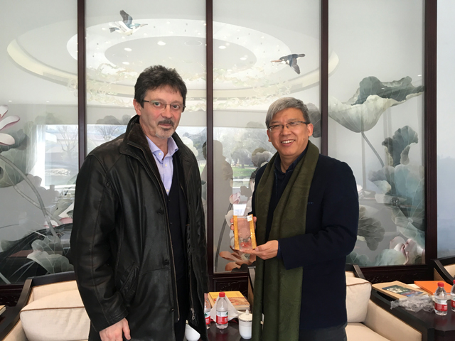 参观结束后,双方在青莲厅座谈,商议今后交流合作的事宜。Michiele Bugliesii教授表示希望有机会在文物修复保护和人文社科方面,特别是对丝绸之路的研究进行合作。最后,双方互赠礼品并合影留念。