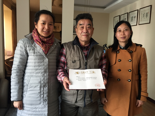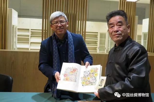 他,就是在2017年2月26日“中国丝绸博物馆丝路之友成立大会上”捐赠《陈景烈丝绸织物图案集》(一册)的七旬老人陈鹏。