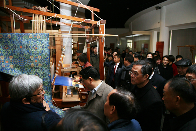 2月9日,全体在浙全国人大代表在省人大的组织下,到中国丝绸博物馆进行会前视察和参观,杭州市副市长张建庭,浙江省文物局局长柳河、副局长曹鸿,风景名胜区管委会副主任孙德荣等领导陪同参观。