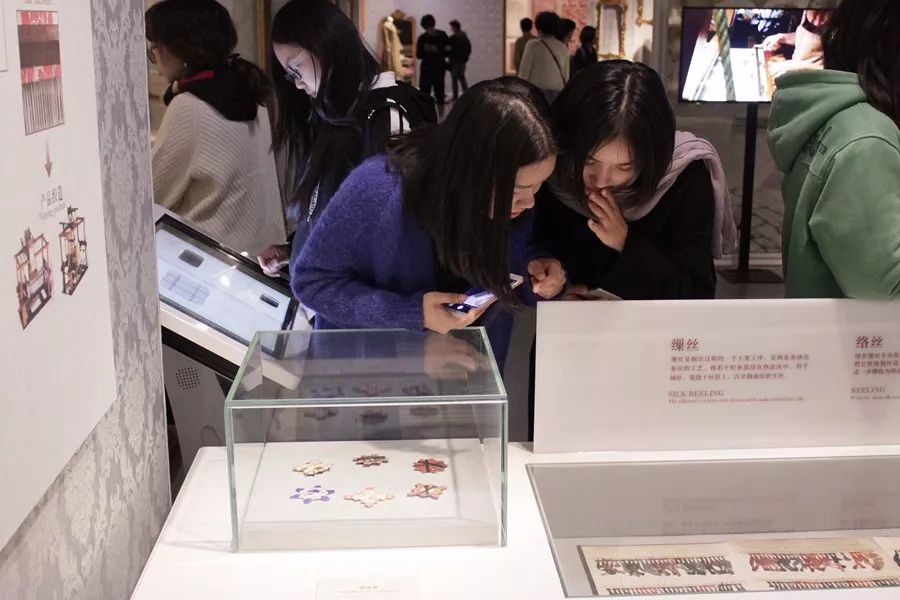 在策展助理陆芳芳的带领下,来宾们参观了“荣归锦上:1700年以来法国丝绸”展,领略了法国悠久的丝织历史与独具特色的丝绸文化。