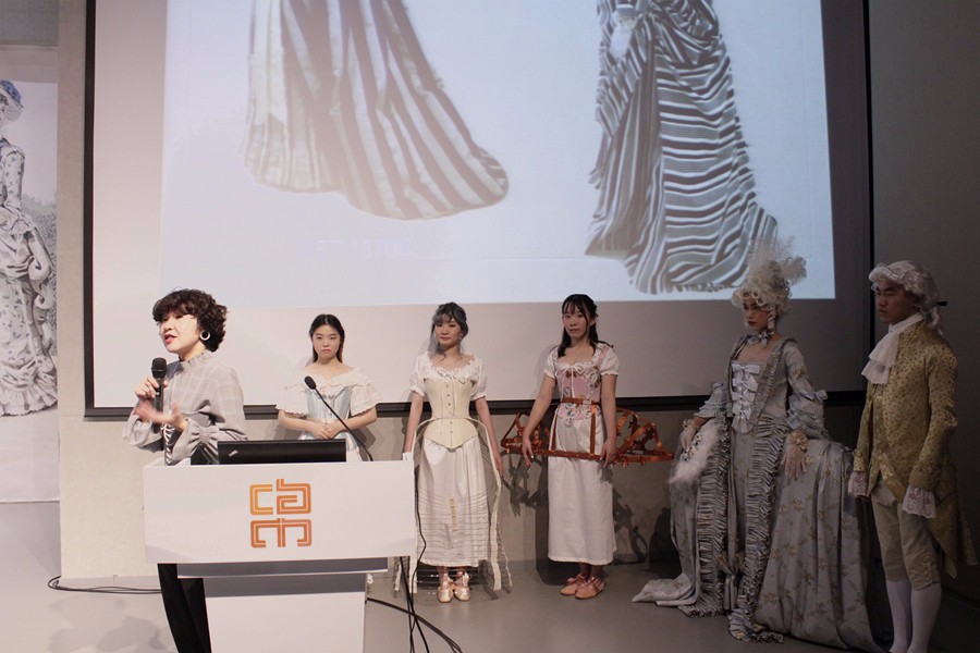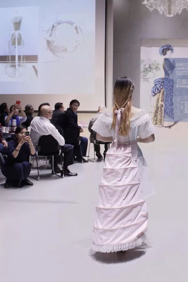 为了让观众们更直观地理解“巴瑟尔”,中丝博与东华大学服装与艺术设计学院合作开展了“西洋服装典型款式的复原与制作”的课题研究。