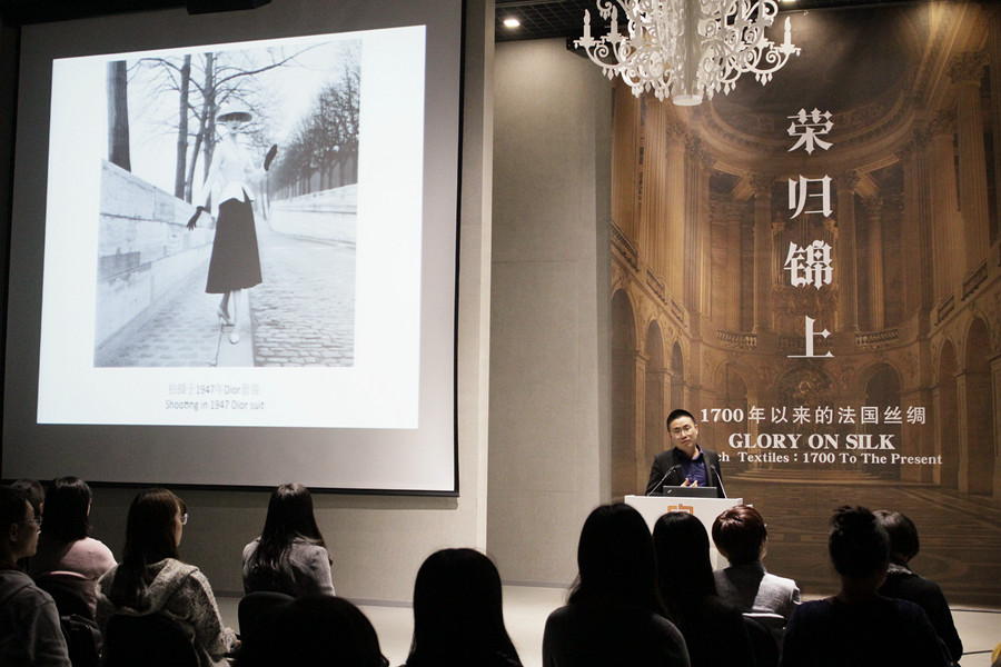 “荣归锦上:1700年以来法国丝绸”展自开展以来受到了社会各界的关注,不少观众从北京、上海等地来到中国丝绸博物馆一睹法国丝绸的魅力。为了更深入地为观众解读展览内容,中丝博特别邀请多位专家和青年学者来馆开展系列讲座。