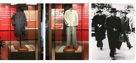 此两件服装均为周恩来总理所穿着过,一件为周总理参加日内瓦会议所着藏青色风衣,另一件为周总理参加日内瓦会议所穿的浅蓝色中山装。