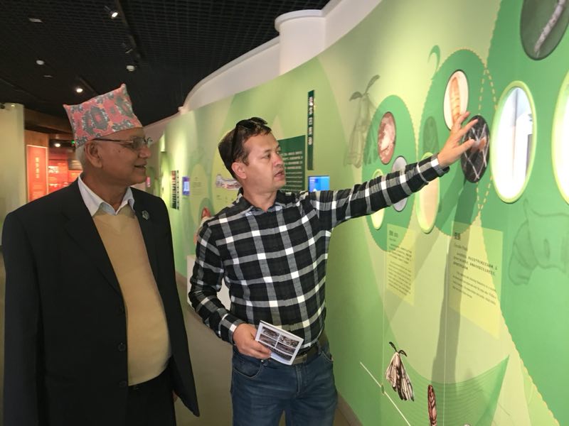 2018年3月30日,尼泊尔学院院长耿伽•普拉萨德•乌普莱蒂一行7人来中国丝绸博物馆访问交流,中国文学艺术界联合会国际联络部亚洲处副处长曹宇光陪同。