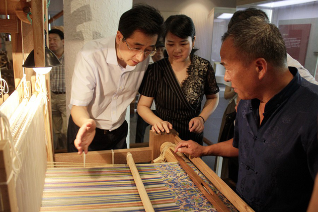 7月12日,广西壮族自治区人大常委会副主任、中国—东盟博览会指挥中心总指挥张晓钦一行在浙江省文化厅副巡视员任群的陪同下参观考察中国丝绸博物馆。国丝馆党总支书记、副馆长张毅、馆长助理周旸全程陪同并作讲解。