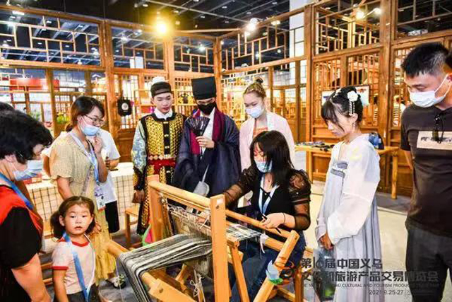 2021年9月25日—27日,中国丝绸博物馆参加了第16届中国义乌文化和旅游产品交易博览会,本次展会以“共话百年 共同富裕 美好生活 美丽中国”为主题。展会期间,浙江省文化和旅游厅党组书记、厅长褚子育,浙江省文物局副局长曹鸿参观国丝展区并表示肯定。