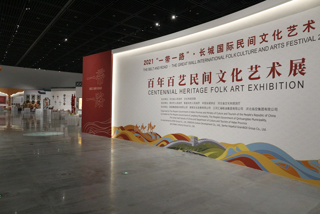 9月15日至17日,以“文化艺术交融·共建‘一带一路’”为主题,由河北省人民政府、文化和旅游部共同主办的2021“一带一路”·长城国际民间文化艺术节(简称艺术节)在河北廊坊和秦皇岛启幕。期间廊坊丝绸之路国际艺术交流中心(简称丝路中心)举办“百年百艺民间文化艺术展”(简称百年百艺展),汇聚了共建“一带一路”6个国家、中国“一带一路”沿线18个省份的非遗项目,用非遗讲述丝路故事、弘扬丝路精神,促进国际民间文化艺术交流互动。