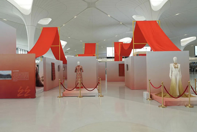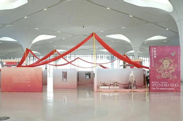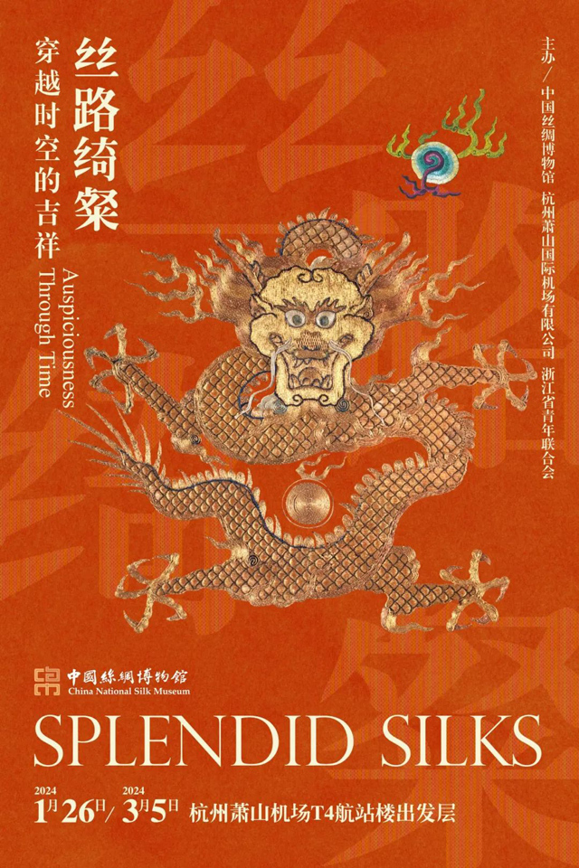 1月26日是2024年春运的第一天,由中国丝绸博物馆、浙江省青年联合会和杭州萧山国际机场联手打造的“丝路绮粲:穿越时空的吉祥”展在萧山机场T4出发大厅正式开幕。