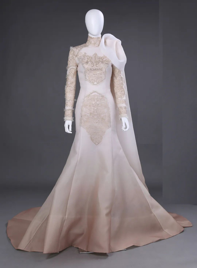 “丝绸艺术活化设计”单元,展示了中国当代设计师通过提取、传承古代丝绸纹样的艺术元素,推陈出新,并融入数字技术,使古老丝绸焕发新生活力。从而推动中华优秀传统文化创造性转化、创新性发展,铸就社会主义文化新辉煌。