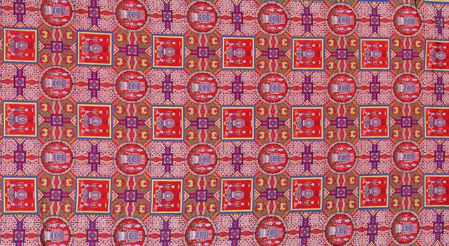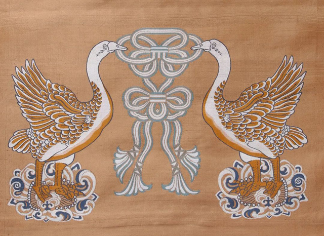 “丝绸之路上吉祥纹样”单元,以丝绸为载体,展品从汉代的云气瑞兽,到晋唐的异域风情和宋元之后回归人间的花鸟虫蝶,再到明清的“福贵寿喜”吉祥世界,通过寓意丰富、千姿百态的丝绸纹样,展示了中国古人独特的审美意趣和对幸福生活的向往。