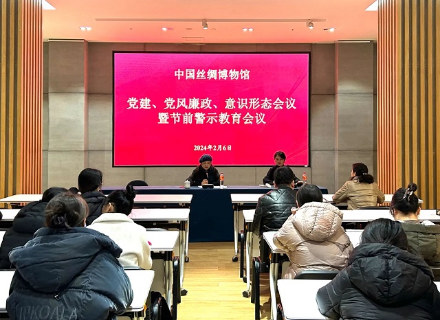 2024年2月6日,中国丝绸博物馆召开党建、党风廉政、意识形态会议暨节前警示教育会议,季晓芬馆长主持会议并讲话。全馆党员参加会议。