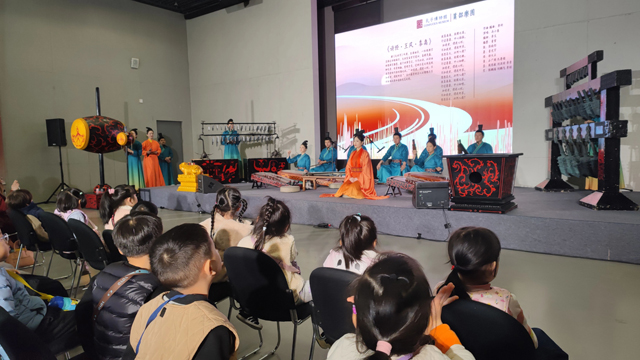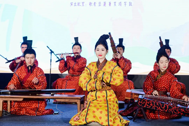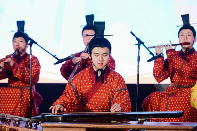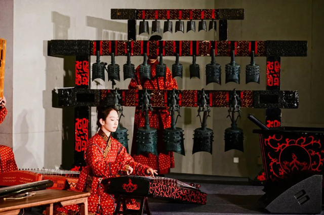 此外,孔子博物馆的箫韶乐团围绕“礼、乐、歌、舞”多途径探索,对传世古曲进行了二次编排复原。其中,钟、磬、琴、瑟、篪等各类乐器数十件,皆是以出土乐器文物为参照复原而来。此次演出了《诗经•小雅•鹿鸣》《妆台秋思》《凤求凰》《春江花月夜》等曲目,并在现场展示了古礼四佾舞。