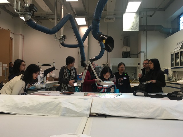 研讨会后,主办方还邀请参会人员参观香港丰富的文化遗产及在港纺织品文保工作者的工作情况。在香港文化博物馆内,纺织品修复团队向参会者展示了馆内修复工作室和相关设施,并介绍了目前正在进行的项目。中国丝绸博物馆的技术团队也与其进行了交流,并期待开展合作。