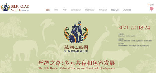 “丝绸之路周”(网址为https://iidos.cn/silkroadweek)是从人类历史文化的已有成果出发,由中国文化遗产界创意和主导、社会各界参与和实施、与丝绸之路沿线国家和地区形成互动、在国际社会中发出中国声音并产生良性影响的长久性年度国际人文交流活动,旨在高举丝绸之路的旗帜,沿着一带一路的网络,为建设人类命运共同体作出努力。通过2020年和2021年两年的连续性举办,“丝绸之路周”将形成基本模式,今后可向丝绸之路沿线省区及国家推广,并逐步推动由联合国教科文组织认定为一个国际性的活动,选择丝绸之路沿线国家和地区共同持续举办。