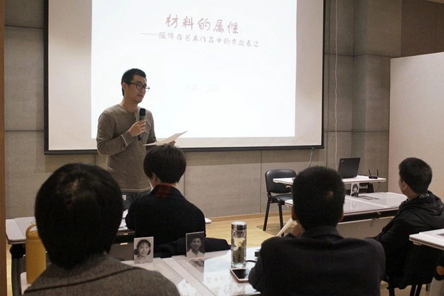 本次展览收藏并展出了中国美术家协会会员、浙江师范大学客座教授、吉林师范大学特聘教授王雷老师的作品。他受邀为听众带来了题为《材料的属性——服饰在艺术作品中的有效表达》的讲座。