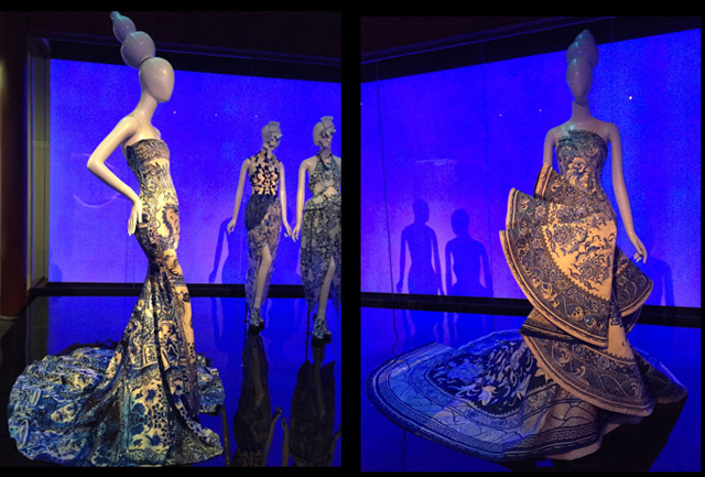 青花瓷礼服:分别来自Roberto Cavalli和郭培