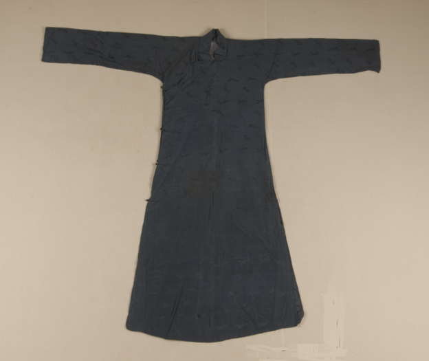 描述:旗袍,是非常有中国特色的女式袍服。不过,该旗袍相对比较简单、朴素。没有复杂的滚边和盘扣,而是简洁的一字扣。所用面料为灰色飞行物纹绸。