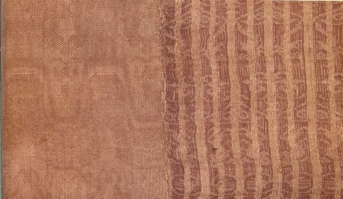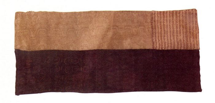 由三块不同的织物拼缝而成,其中一片锦虽然色彩的保存情况不好,但仍可以看出其图案采用了极具特色的楼堞形骨架。