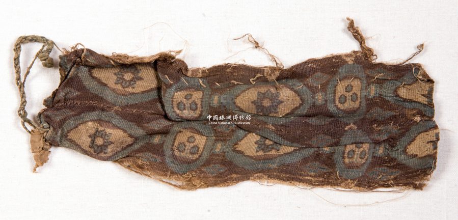 形状内容描述 该织物为一块花卉纹锦。上有两组纹样,一组为八瓣小花纹,另一组则是树叶纹。这两类都是生命的植物,被看作是生命和绿色的象征,在各种工艺品上被广泛用作主题纹样,具有极强的装饰性。尤其是树叶纹,可能是生命树的一种代表,这是一种古老的植物崇拜的遗存,世界各地均有,据说在波斯为云杉,在中国为桑,印度则为菩提树。