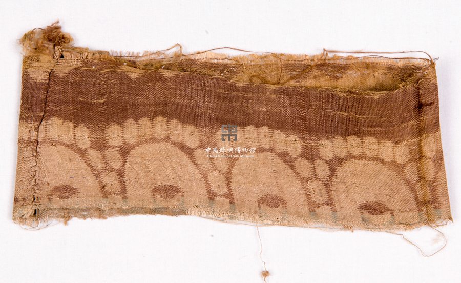形状内容描述 该织物是一块北朝时期的面料,纹样为联珠新月纹。魏晋南北朝是一个政局动荡的时代,但也是南北文化交流发展的新时期。在丝绸艺术方面,这一时期的鲜明特点是来自西方的影响。其中联珠纹就是人们认为的西域文化对丝绸图案的最大影响。联珠纹其实并不是主题纹样,而是一种骨架的纹样,即有大小基本相同的圆形几何点连接排列,形成更大的几何形纹样,然后在这些骨架上填以动物、花卉等各种纹样,有时也穿插在具体的纹样中作装饰带。联珠纹的象征意义说法不一,有说象征太阳,有说是佛珠的表示,还有说它象征世界和生命的。至于新月纹,则是阿拉伯世界的常见题材。