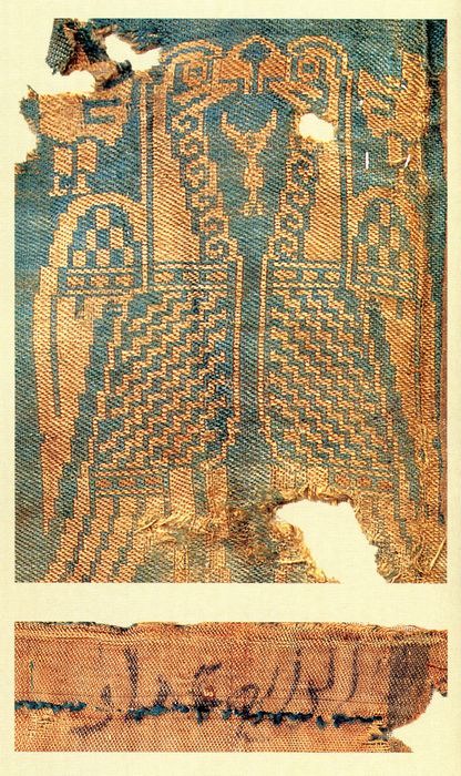 在此件织物的背面还有一行墨书的阿拉伯文字。