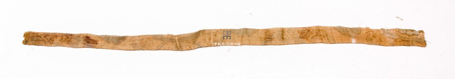 形状内容描述 该件纬锦征集自青海民间。织物外观呈狭长条状,略有褪色,图案的全貌不可见,只能看到它采用了花卉纹样。