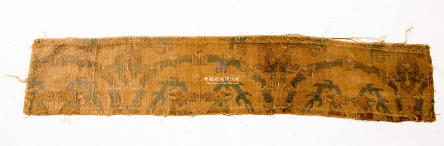 形状内容描述 该件为唐代纬锦,图案是团窠对鹿纹,以花卉组成团窠环,被称作是"陵阳公样",代表了唐代仿造西域文化而创造的具有中国特色的联珠团窠。
