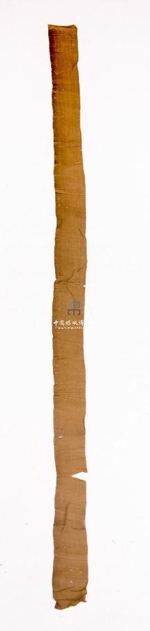 形状内容描述 此件织物原可能作腰带之用,以链式罗组织织成,是典型的四经绞罗织物。