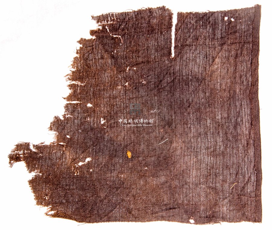 形状内容描述 该织物残片为一褐色菱点罗。唐辽之间最为常见的一种提花罗,属于通绞罗,其纹样大部分是小几何纹。