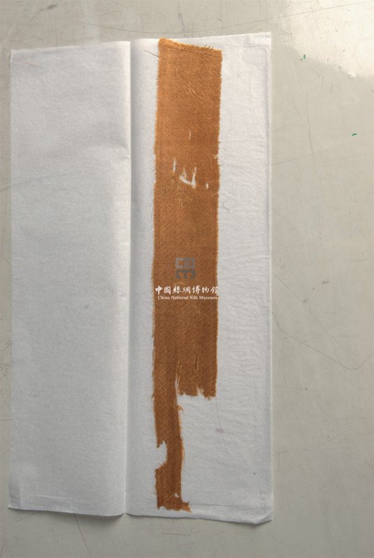 形状内容描述 该织物残片为一黄色菱纹格绫。菱形,是中国历史上一直可以看到的几何纹样,也可以作为一些主纹样的背景。