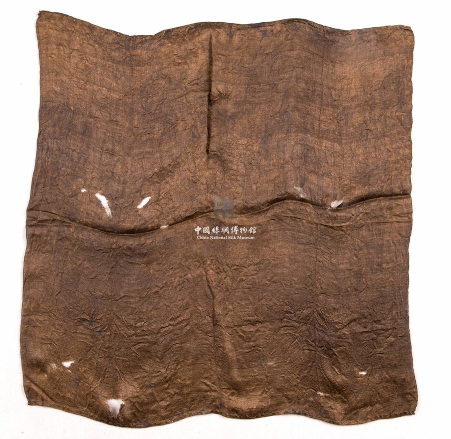 形状内容描述 该织物为一块方形手帕。面料采用深褐色素面缎。