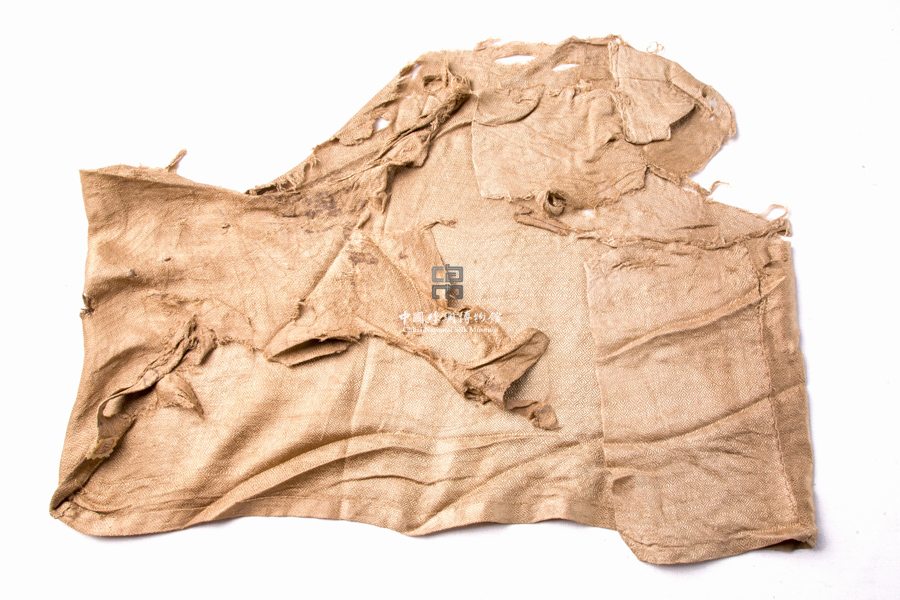 形状内容描述 该残片为褐色暗花绫,纹样为几何纹之回纹。二二错排。推断应为袍服一角。