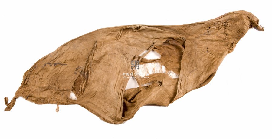 形状内容描述 该织物为一块黄色绢。即最简单的平纹类织物。残破,有污渍。