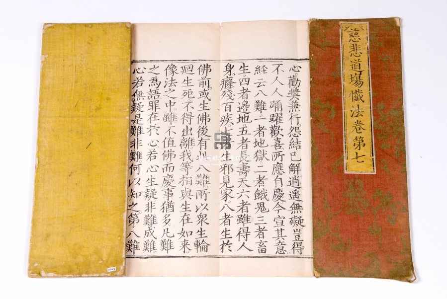 形状内容描述 该经皮子,采用红色花卉纹闪缎为面料。闪缎,流行于明清时期,这是一种经纬丝线异色的单层提花缎织物。一般的组织是经面缎为地,纬面缎或纬面斜纹起花,这样在以经线色彩为主的经面色彩中往往会有纬线间丝点闪烁不定,故称闪缎或闪色。