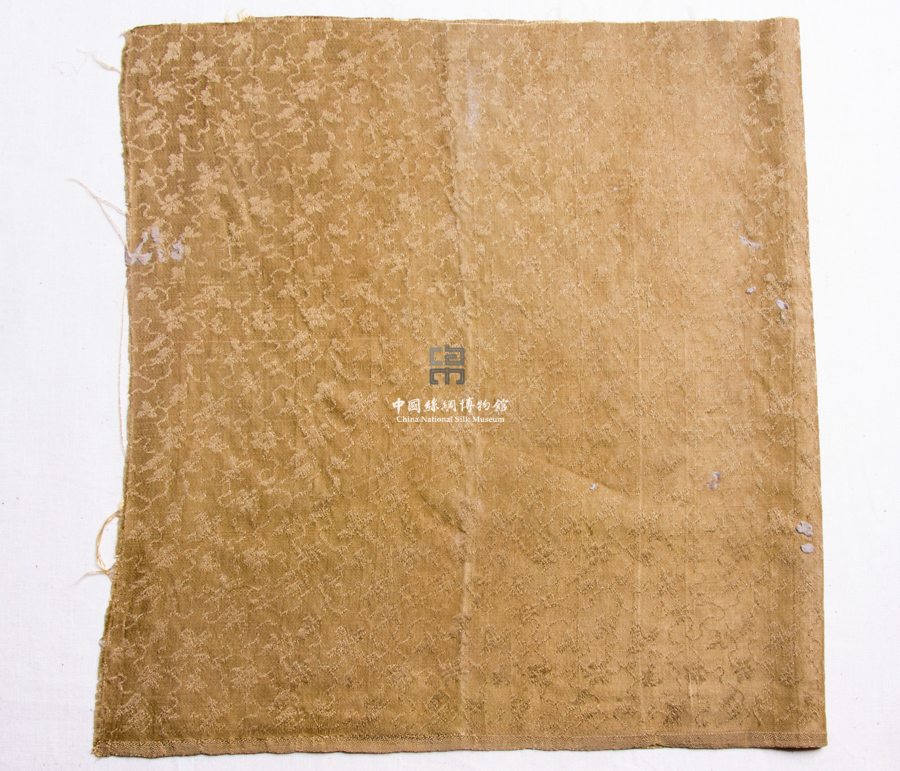 形状内容描述 此件织物较为完整,为明代较为常见的暗花缎织物,使用正反缎组织织成,图案为水波地上缀以杂宝纹样。