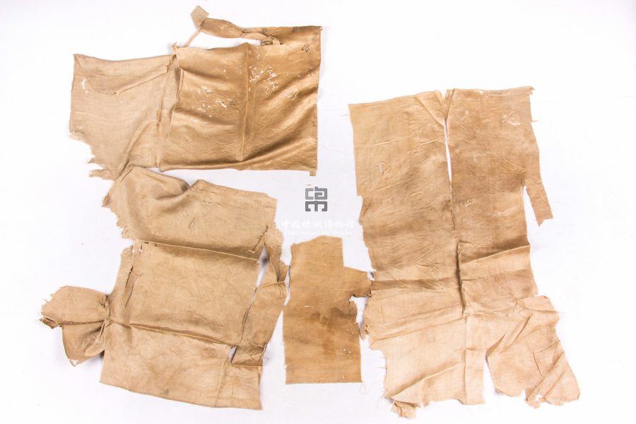 形状内容描述 该织物残片为素缎织物。素缎,即不提花的缎织物,关于它的起源一般认为是宋末元初。这些残片推断其原件为素缎褥。