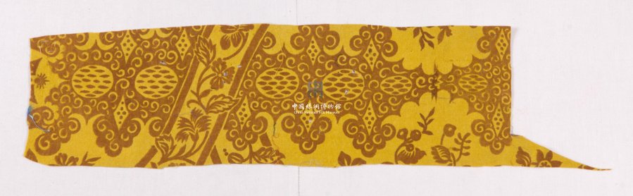 形状内容描述 该织物为黄色地的丝型印花呢。印花纹样为花卉纹。