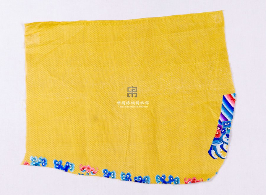 形状内容描述 该织物为一明黄地芝麻纱。芝麻纱在清代使用广泛。其绞纱与平纱组织有时可结合在很小的区域中使用,犹如一种新的组织。